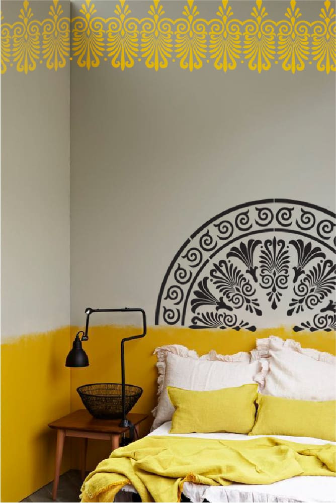 A Kalkutta stencilcsalád különleges, keleties hangulatot varázsol bármely térbe. A részletgazdag minták mandalára emlékeztetnek, és harmonikus elrendezésüknek köszönhetően szemet gyönyörködtető kompozíciók alkothatók velük. Az Extra 01 stencillel akár 106 cm átmérőjű körmotívum is készíthető, így padlón, falon vagy bútorfelületen is lenyűgöző dekoráció jöhet létre.