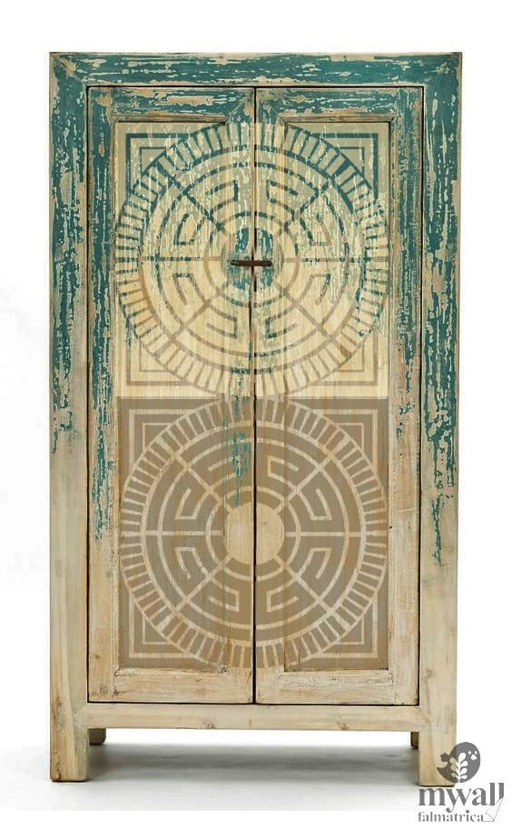 Geometrikus díszítő stencile. Jól állhat bútoron, falon, textilen egyaránt.