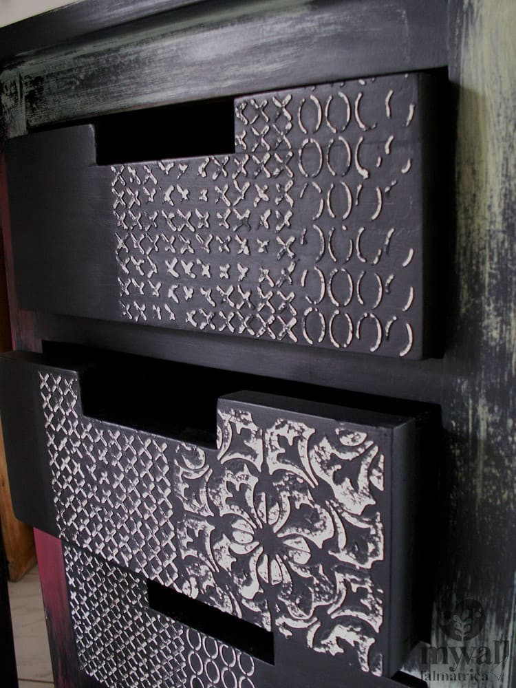 Többféle mintát mixeltem egy-egy ívre ennél a stencil családnál. Akkor használd, ha a díszítéssel vegyes, mintázott hatást szeretnél elérni.