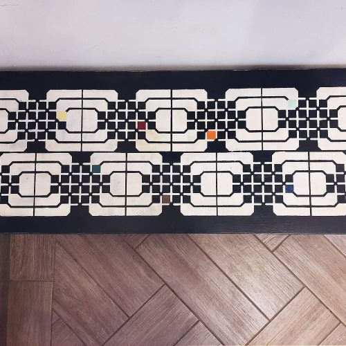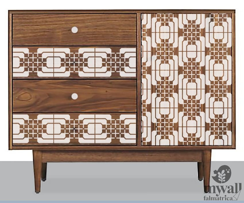 Érdekes rácsozatú stencil minta, ami a '70-es évek retro hangulatát idézi, de modern környezetben is jól mutat.