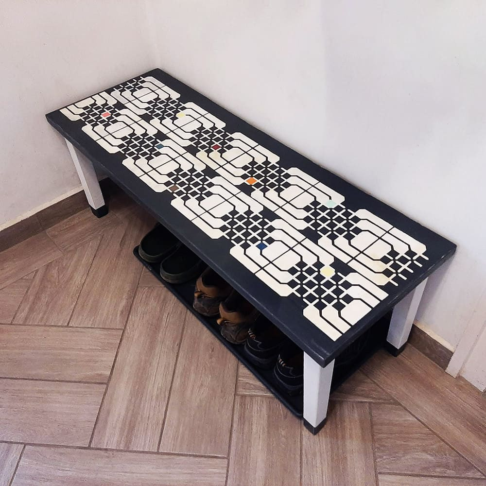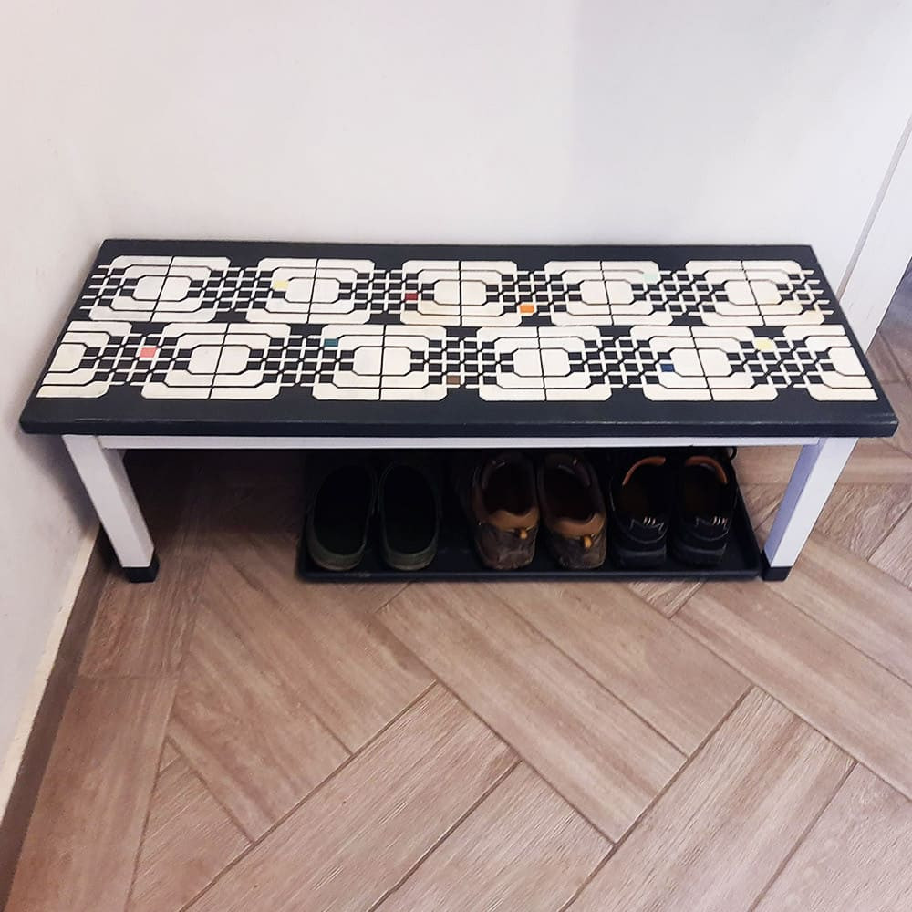 Az előszobai pad Lászlóné Judit munkája. Köszönjük a képeket.