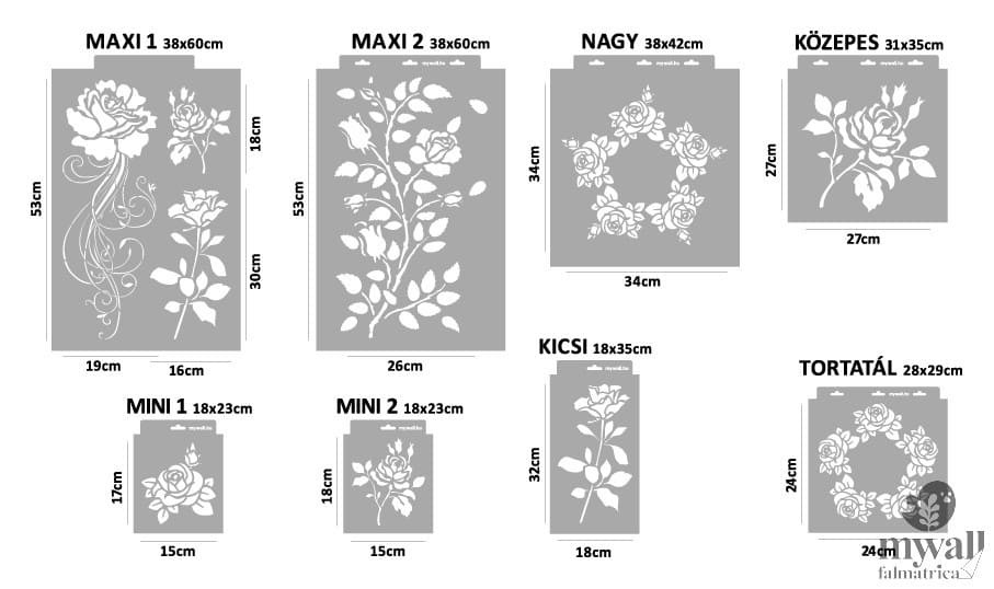 Rózsák minden mennyiségben! Ebben a stencilkollekcióban többféle variációt találsz rózsa témában. Festheted bútorra, falra, tortatálra, fiókra, ajtóra, asztallapra, monokrómban, színesen ...