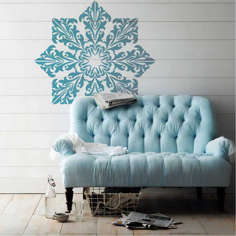 A középpontosan nyolcszor ismételhető stencil minta átmérője felfestve 106 cm lesz.