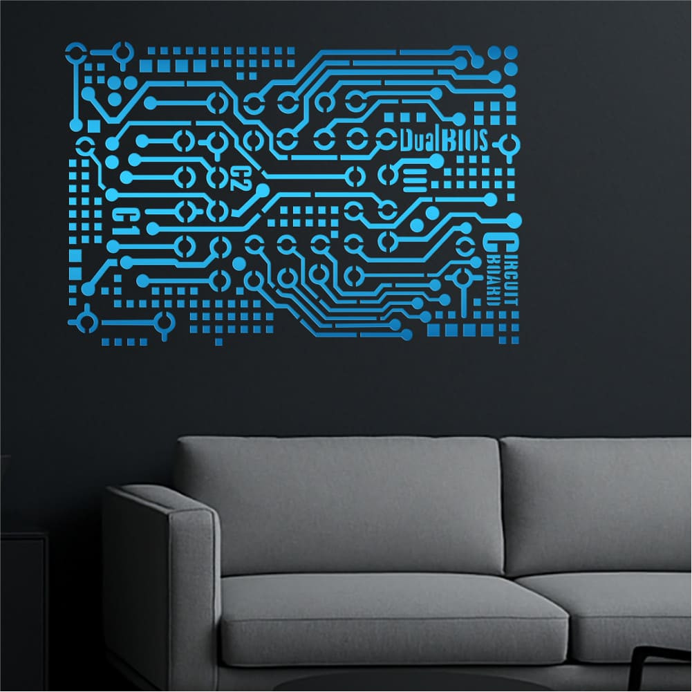 A MyWall Áramkör 01 stencilcsalád a digitális világ letisztult, mérnöki esztétikáját hozza el az otthonod falára. Szögletes, éles vonalvezetésével olyan, mintha egy mikrochip belső világába nyernél bepillantást – csak ezúttal festékkel és kreativitással.