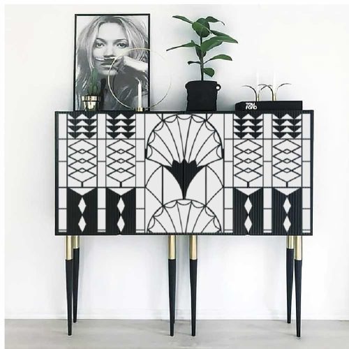 Adj stílust megunt bútoraidnak, teremts fókuszpontot Artdeco stencilünkkel. A stencil Marcali-Kiss Rita inspirációjára készült. Ő festette az olive színű kis komódot.