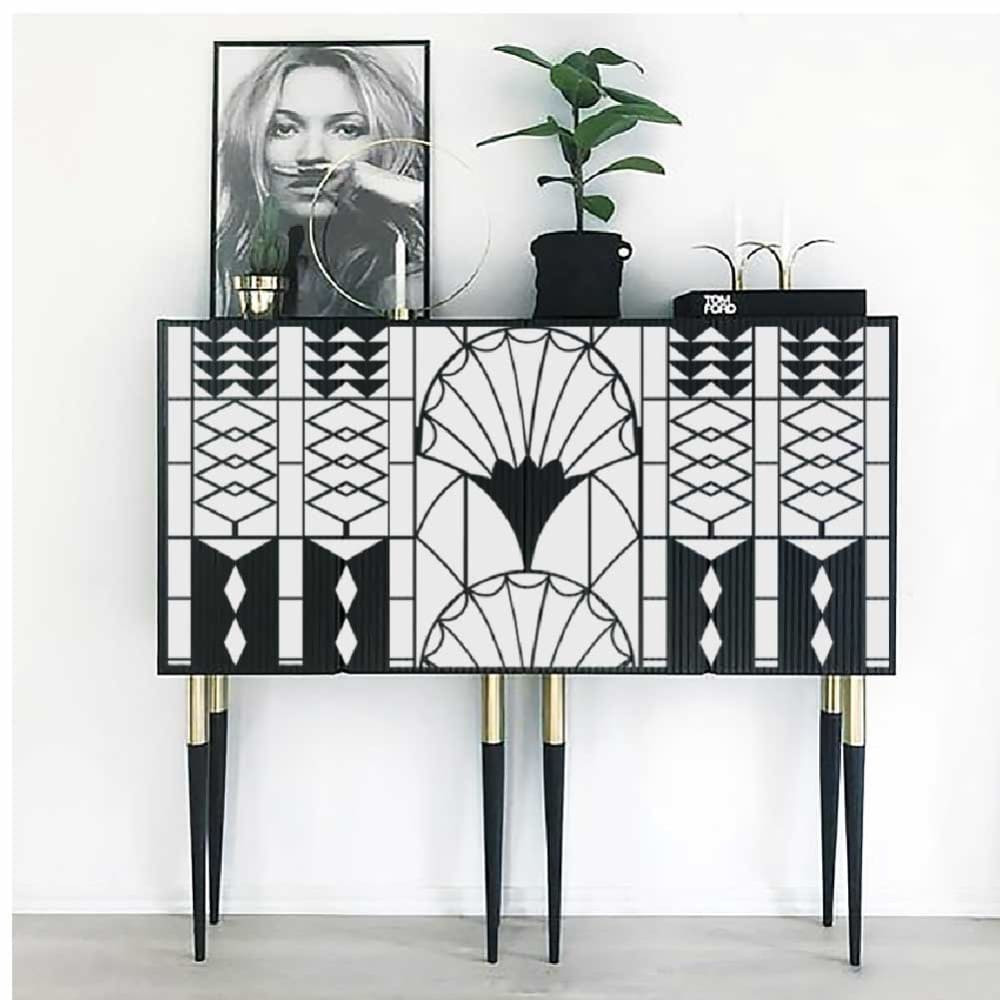Adj stílust megunt bútoraidnak, teremts fókuszpontot Artdeco stencilünkkel. A stencil Marcali-Kiss Rita inspirációjára készült. Ő festette az olive színű kis komódot.