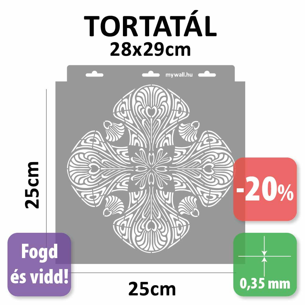 Nálunk minden stencil rendelésre készül, nem tartunk készletet. Néha azonban előfordul, hogy egy-egy darab véletlenül duplán készül el, mint például ez is. Ez a teljes értékű stencil most kedvezményesen érhető el – csak amíg ez az egy példány készleten van. Ugyanilyen mintát természetesen bármikor rendelhetsz a megszokott áron, de ez az akció kizárólag erre a darabra vonatkozik.