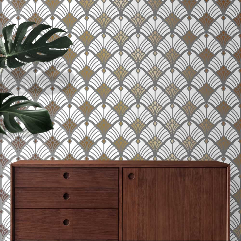 Minden irányba folytatható elegáns íves stencilminta (nem csak) az artdeco szerelmeseinek.