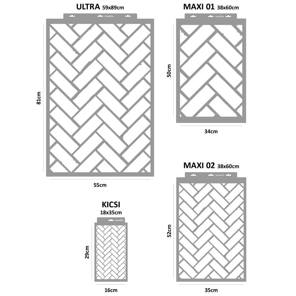 Bontott tégla hatású stencilek, halszálka mintában, különböző méretekbrn. Kreatív festéssel alkoss patinás téglafalat, vagy tedd még plasztikusabbá a vastagabb, 3D változattal!