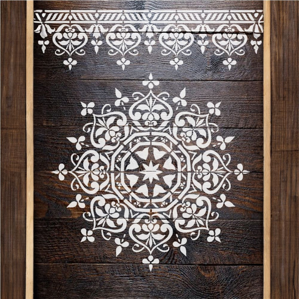 This highly decorative mandala, complete with an accompanying border, offers countless decorating possibilities. Whether you use it to create a stunning focal point on a wall, embellish furniture, or add intricate details to textiles, this mandala and border set will elevate any project with its beauty and versatility. Experiment with different colors and techniques to make the design uniquely yours.