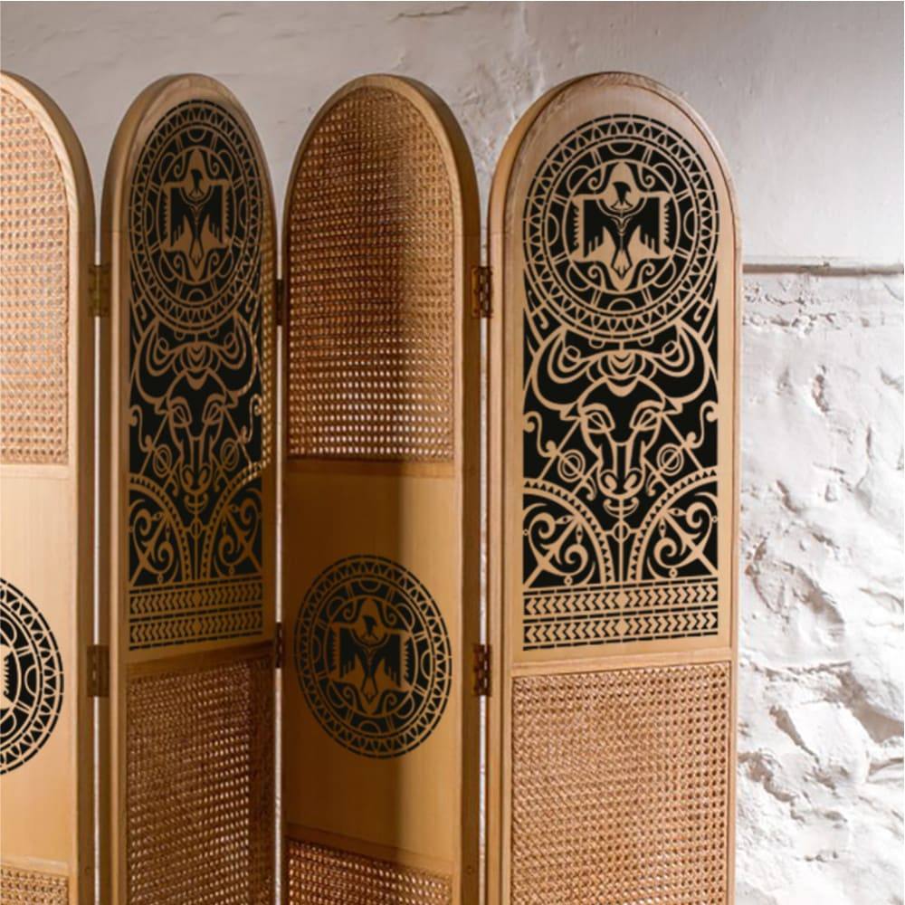 This stencil pattern evokes the totems carved by New Zealand's indigenous people, the Maori, known as pouwhenua. You can create a unique and exotic atmosphere in your home with it. It can be used on furniture, walls, or home textiles alike.