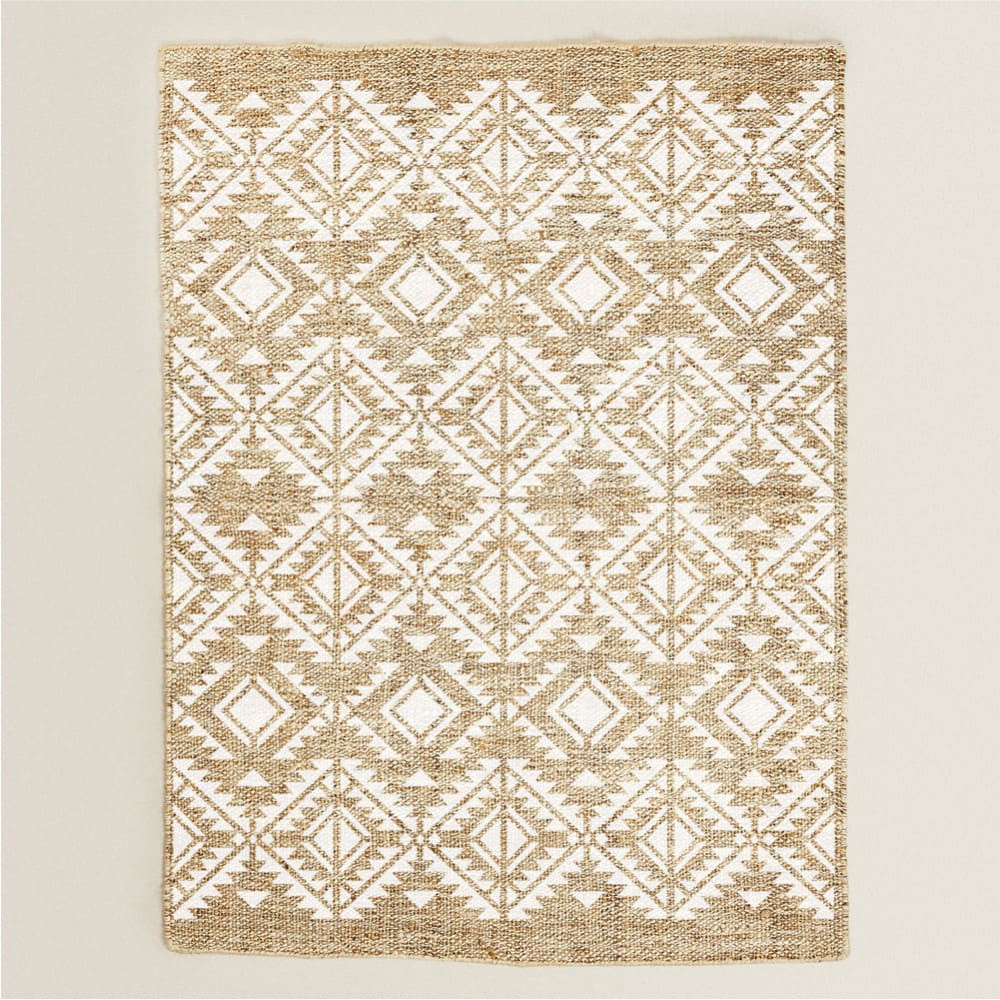 This stencil pattern evokes traditional Mexican motifs. In addition to furniture, it can be used on a rustic jute rug for a charming effect.