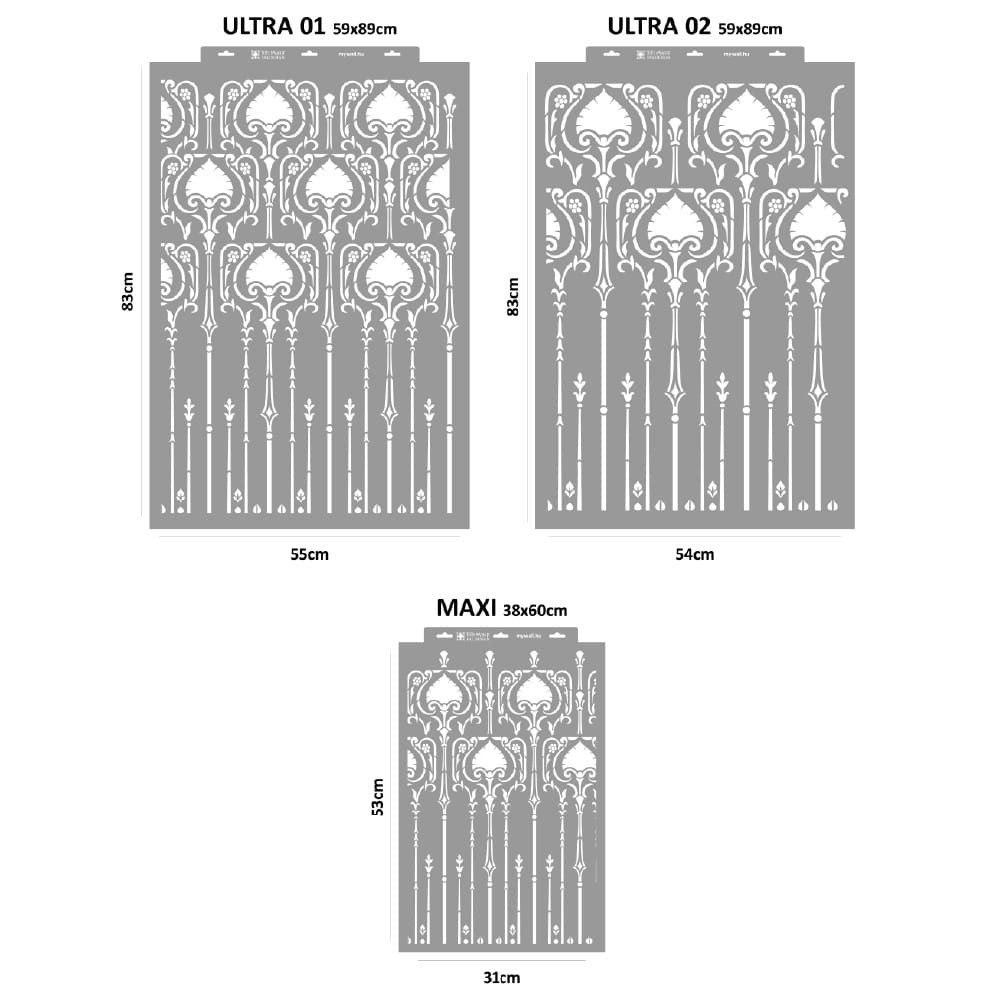Ez a stencil tökéletes választás azoknak, akik szeretik a történelmi hangulatú, mégis modern stílusban készült díszítéseket. A bordűr minta bekerült a kollekcióba, hogy megkönnyítse az otthonok egyedi, klasszikus hangulatú feldobását.