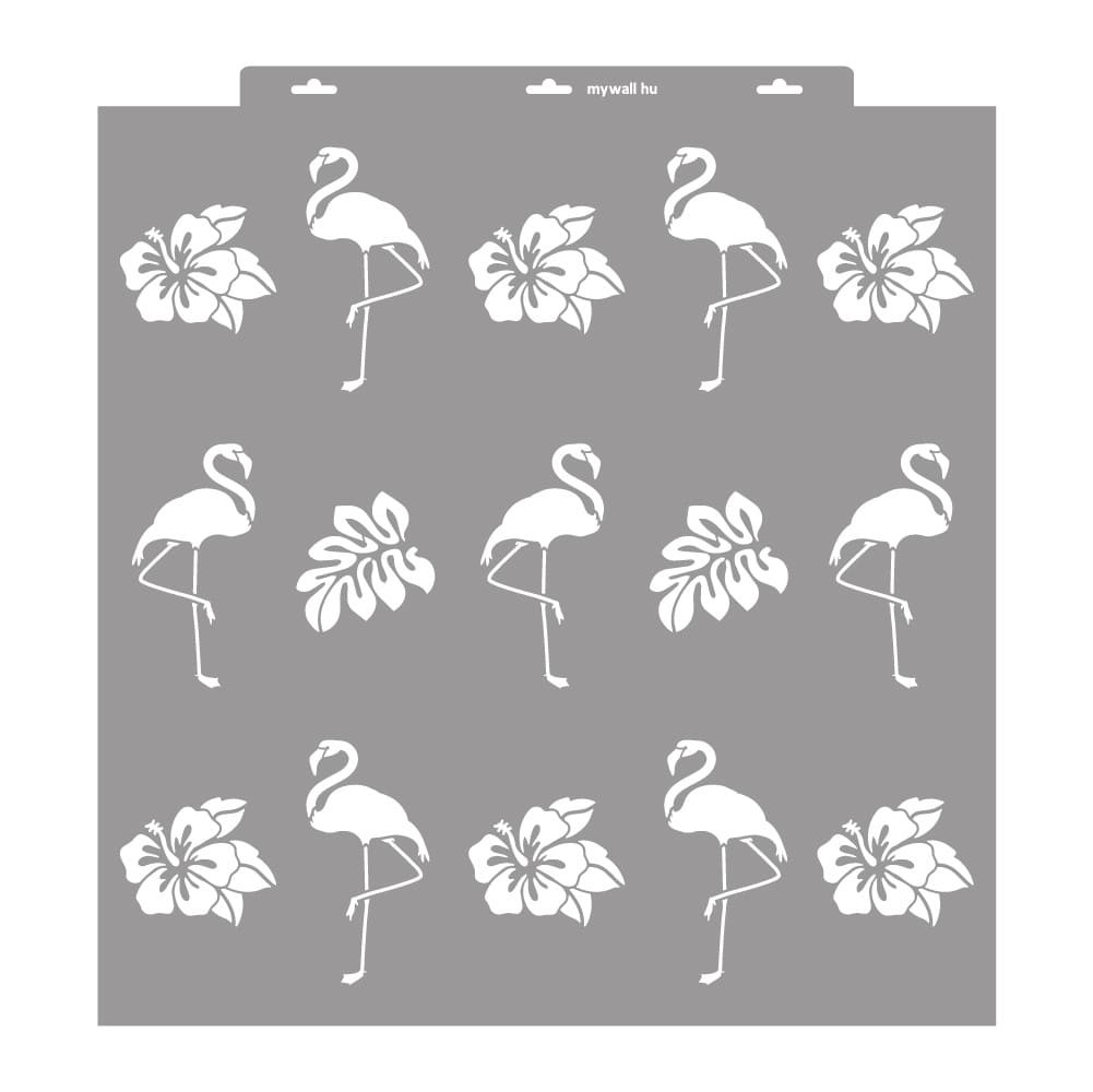 A MyWall Flamingó stencilcsalád a trópusi hangulatot hozza el otthonodba. A kecses flamingók elegáns vonalvezetése mellett levelek és virágok teszik teljessé a kompozíciót. A különböző méretű mintákkal változatos, mégis egységes dekoráció hozható létre, akár egyetlen falon is.