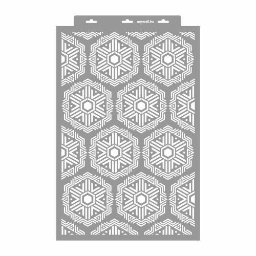 Ez a stencil a Kristály kollekció legsűrűbb mintázatát kínálja. A részletgazdag, ismétlődő geometrikus elemek erőteljes vizuális hatást keltenek, miközben megőrzik a minta harmóniáját és ritmusát.
