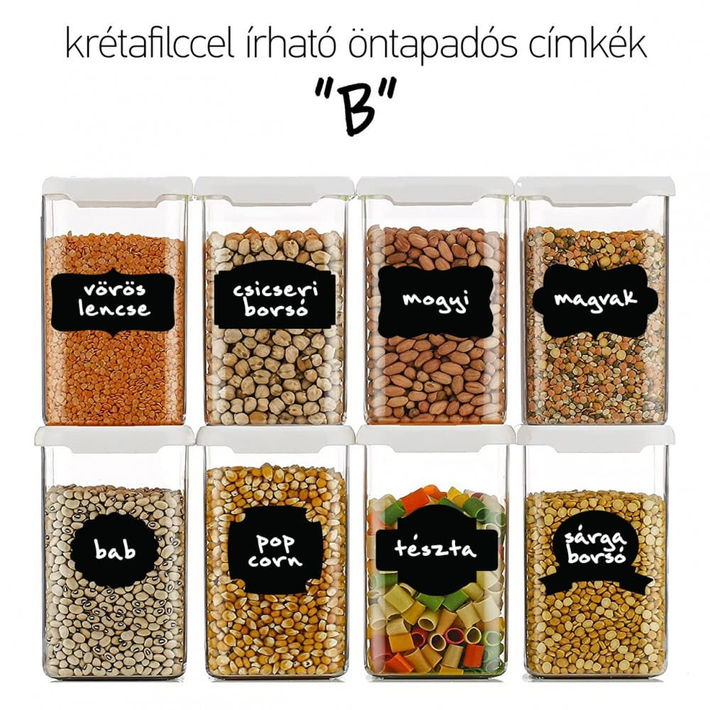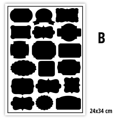 Krétával, krétafilccel (sötét színek) vagy filctollal (világos színek) írható címkék.