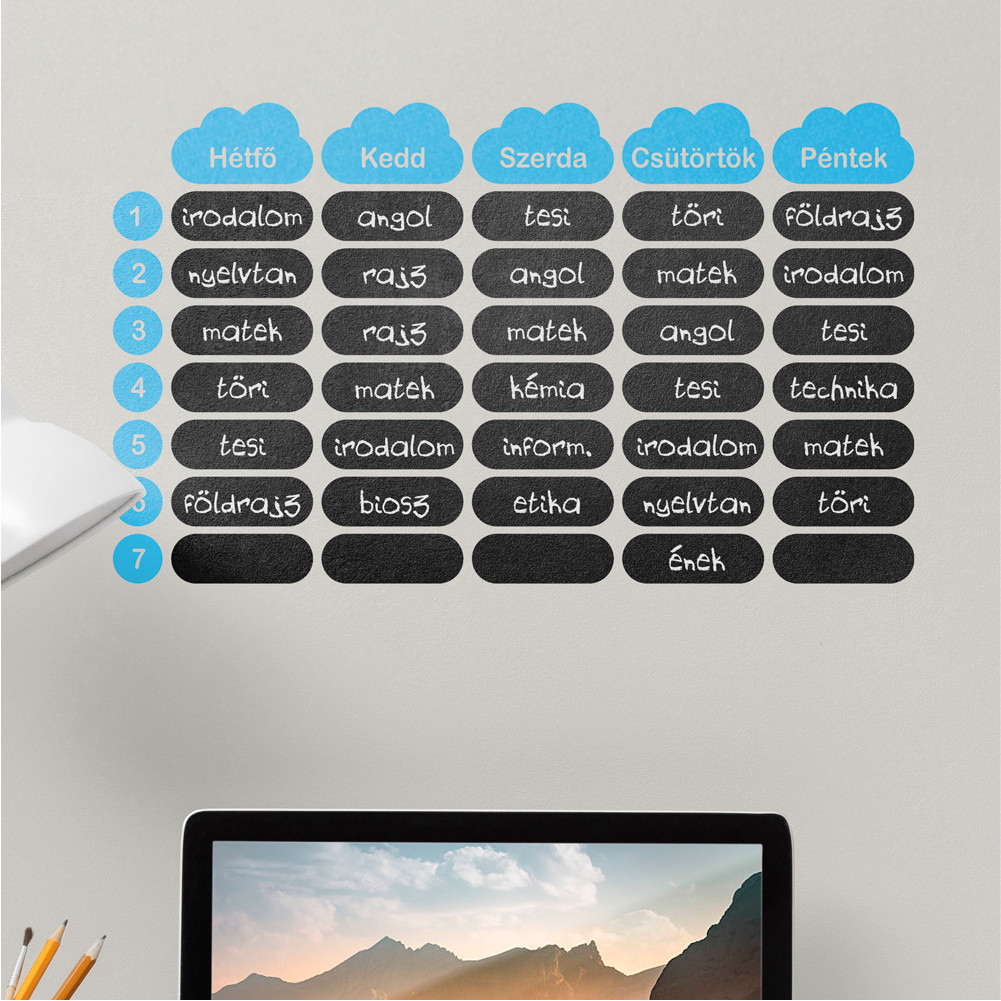 Krétával írható felhős órarend falmatrica 50x30 cm