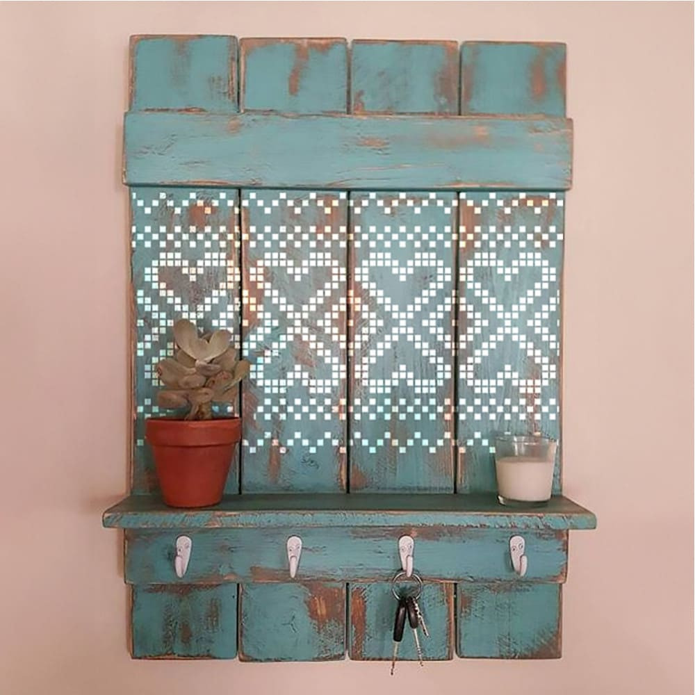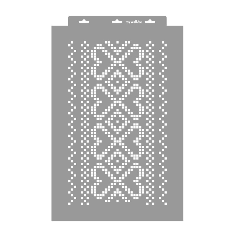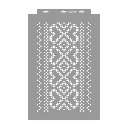 You can paint one of the most beautiful tree of life motifs from Hungarian cross-stitch embroidery patterns with this stencil. It belongs to the Csaroda lark village curtain pattern, but stands well on its own. The double row of hearts version resembles a woven motif. In modern homes today, we can pay homage with due respect to this reimagined Hungarian decorative technique.