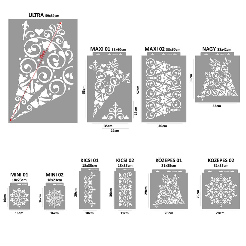 With this stencil, you can create the illusion of wrought iron craftsmanship on your walls or furniture. With some variations, you can even create a frieze.