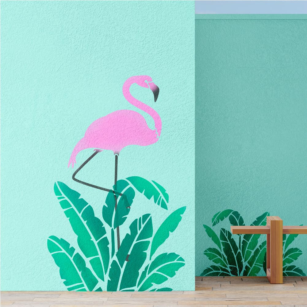 A MyWall Flamingó stencilcsalád a trópusi hangulatot hozza el otthonodba. A kecses flamingók elegáns vonalvezetése mellett levelek és virágok teszik teljessé a kompozíciót. A különböző méretű mintákkal változatos, mégis egységes dekoráció hozható létre, akár egyetlen falon is.