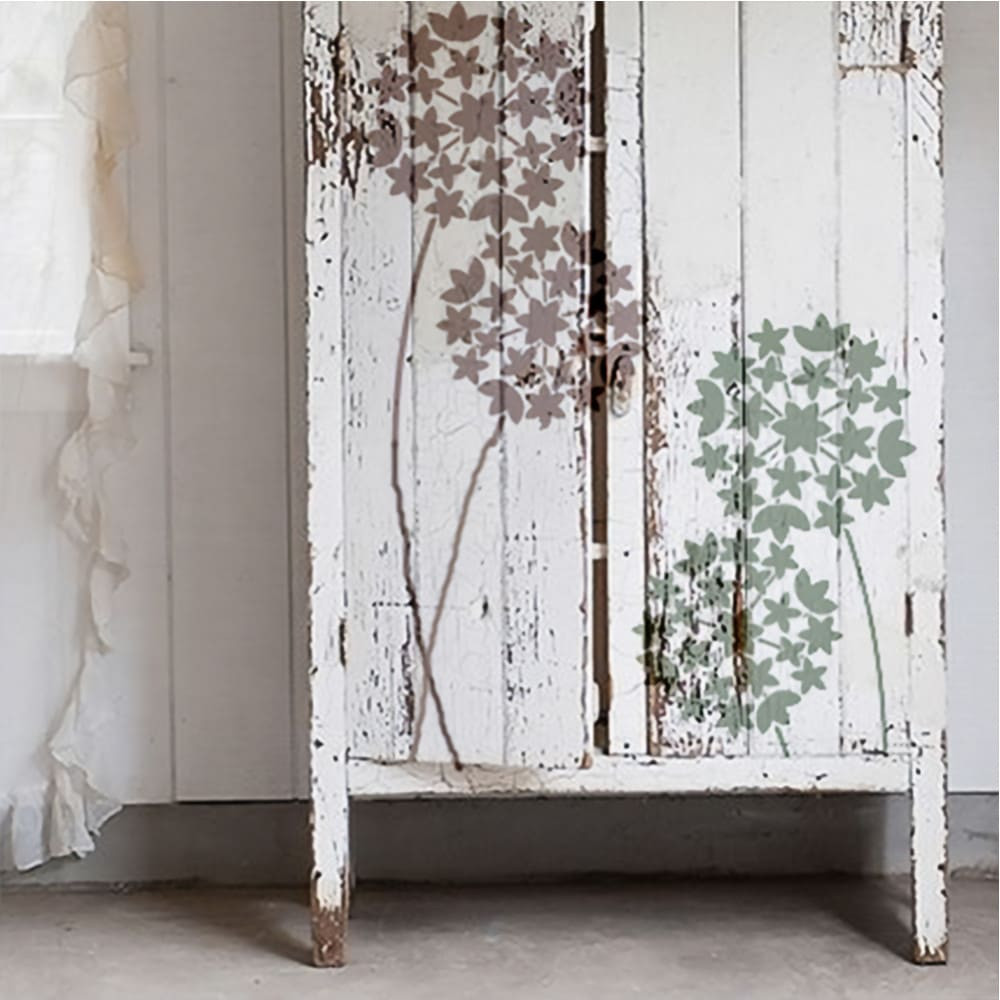Tavasszal, a kertemben nyíló óriás díszhagyma virága ihlette ezt a stencilcsaládot. A virágok szárát folytatva gyönyörű önálló falfestés készíthető vele, de cak a virágfelyek is használhatók.
