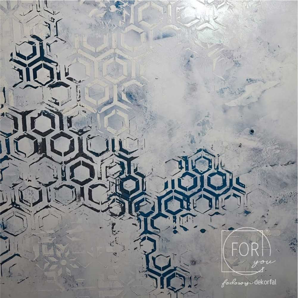 Hatszög 04 stencil - 3D - 31x35 cm közepes