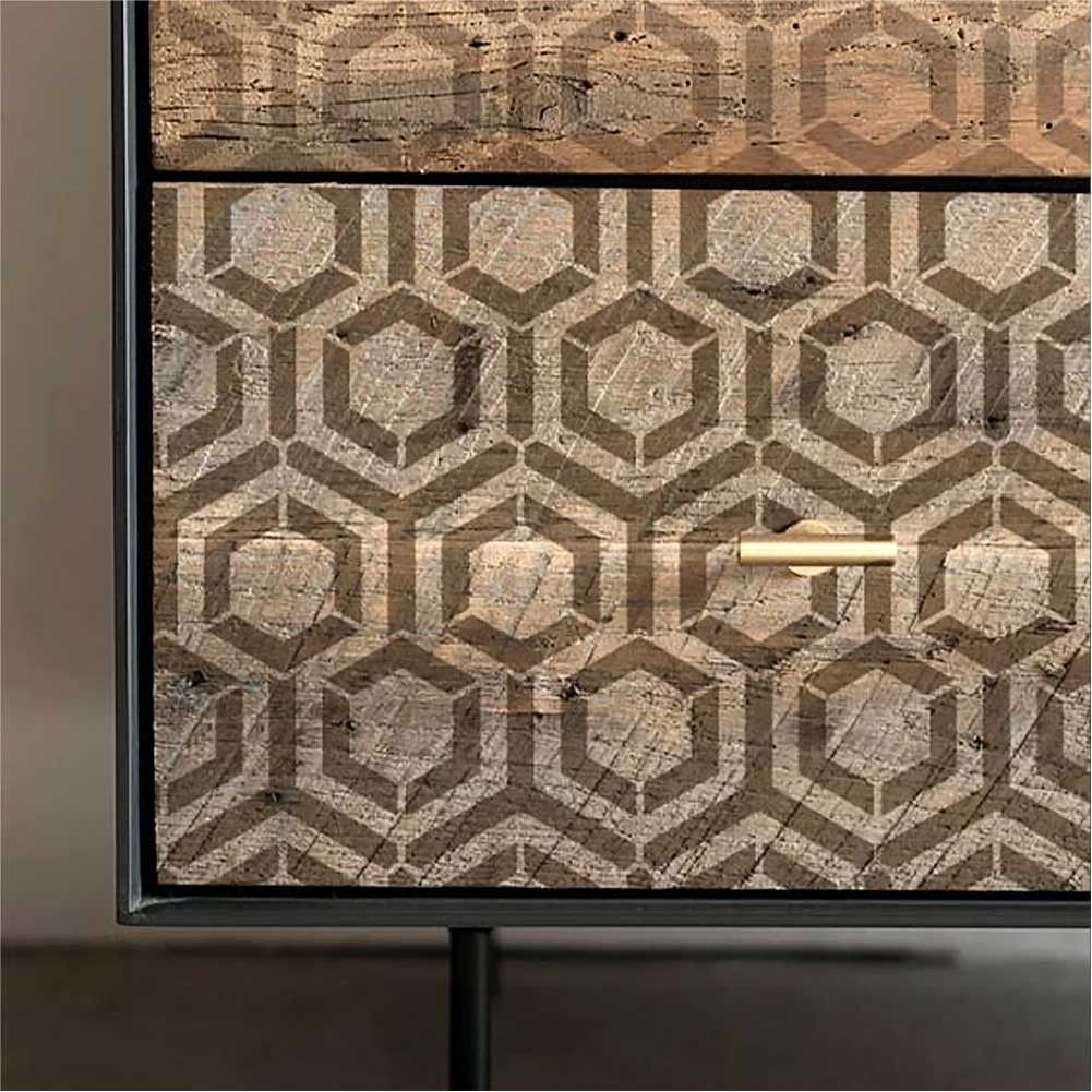 Minden irányba folytatható geometrikus mintájú stencil többféle léptékben.