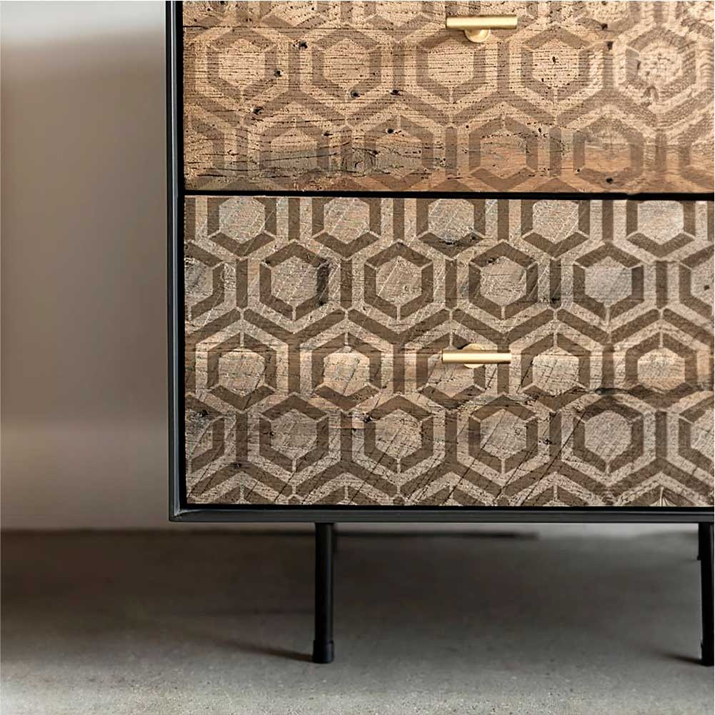 Minden irányba folytatható geometrikus mintájú stencil többféle léptékben.