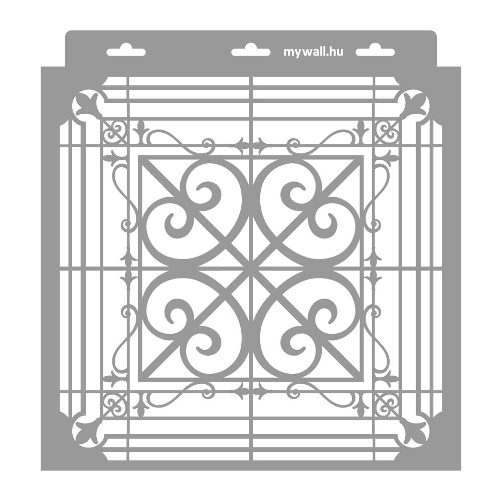 Ezt a designt a klasszikus öntöttvas szikrafogók, kandallórácsok ihlették. Ezzel a stencillel kiváló fókuszpontot alkothatsz a mai modern enteriőrödben egyúttal visszautalhatsz a régi idők dekoratív megoldásaira, mintegy tisztelegve a letűnt korszakok kiváló mesterei előtt. Bútorra, dekorfalra is remek választás, jól párosítható a kovácsoltvas rozetta stencilünkkel.