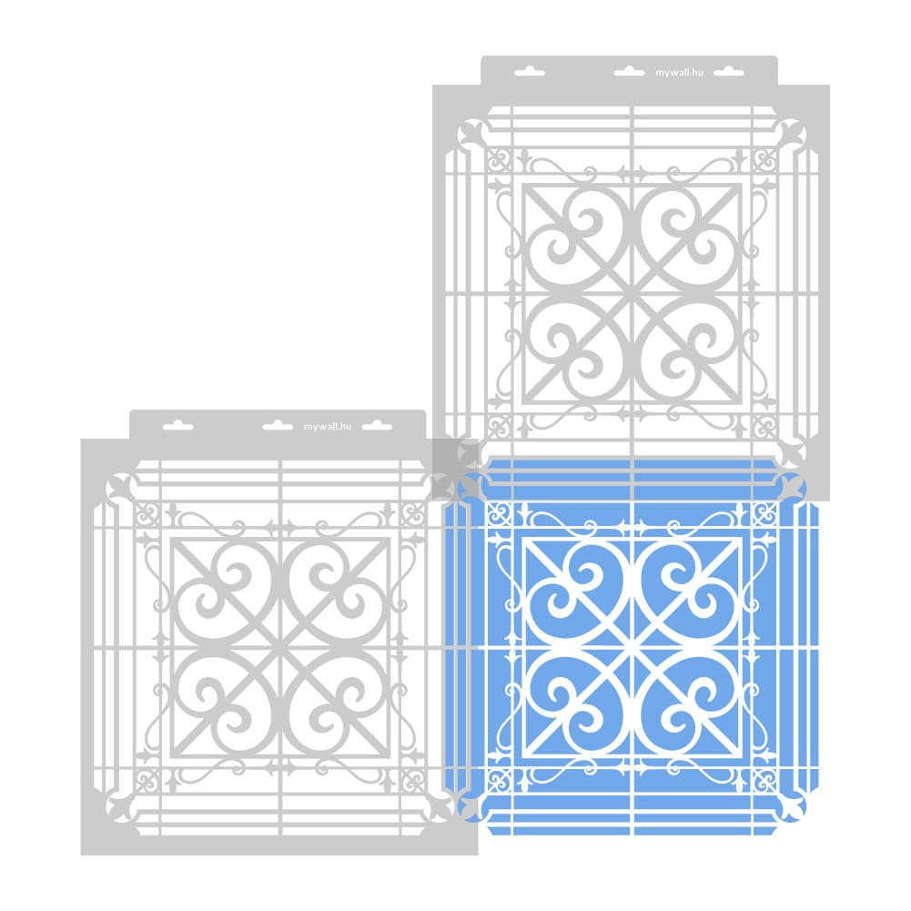 Ezt a designt a klasszikus öntöttvas szikrafogók, kandallórácsok ihlették. Ezzel a stencillel kiváló fókuszpontot alkothatsz a mai modern enteriőrödben egyúttal visszautalhatsz a régi idők dekoratív megoldásaira, mintegy tisztelegve a letűnt korszakok kiváló mesterei előtt. Bútorra, dekorfalra is remek választás, jól párosítható a kovácsoltvas rozetta stencilünkkel.