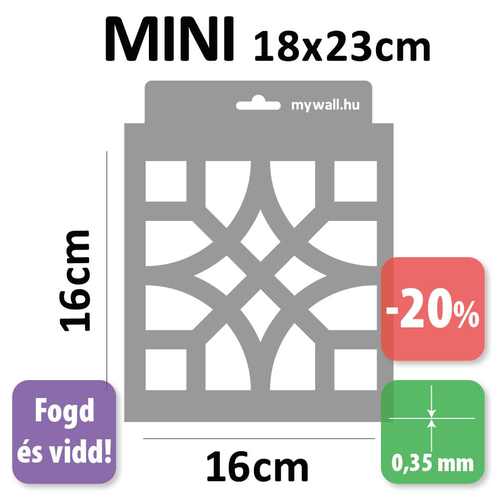 Nálunk minden stencil rendelésre készül, nem tartunk készletet. Néha azonban előfordul, hogy egy-egy darab véletlenül duplán készül el, mint például ez is. Ez a teljes értékű stencil most kedvezményesen érhető el – csak amíg ez az egy példány készleten van. Ugyanilyen mintát természetesen bármikor rendelhetsz a megszokott áron, de ez az akció kizárólag erre a darabra vonatkozik.