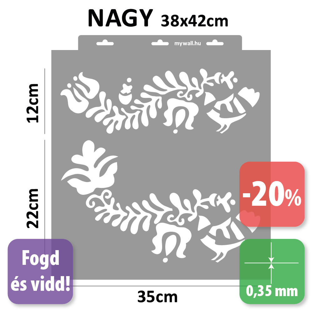 Nálunk minden stencil rendelésre készül, nem tartunk készletet. Néha azonban előfordul, hogy egy-egy darab véletlenül duplán készül el, mint például ez is. Ez a teljes értékű stencil most kedvezményesen érhető el – csak amíg ez az egy példány készleten van. Ugyanilyen mintát természetesen bármikor rendelhetsz a megszokott áron, de ez az akció kizárólag erre a darabra vonatkozik.