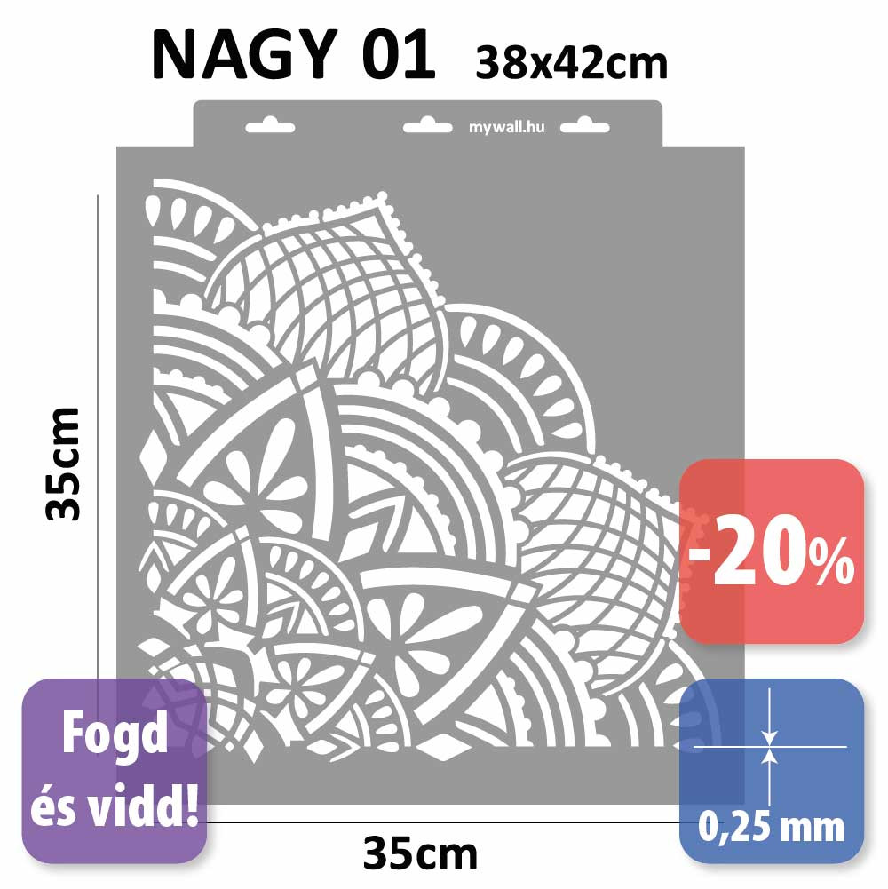 Nálunk minden stencil rendelésre készül, nem tartunk készletet. Néha azonban előfordul, hogy egy-egy darab véletlenül duplán készül el, mint például ez is. Ez a teljes értékű stencil most kedvezményesen érhető el – csak amíg ez az egy példány készleten van. Ugyanilyen mintát természetesen bármikor rendelhetsz a megszokott áron, de ez az akció kizárólag erre a darabra vonatkozik.