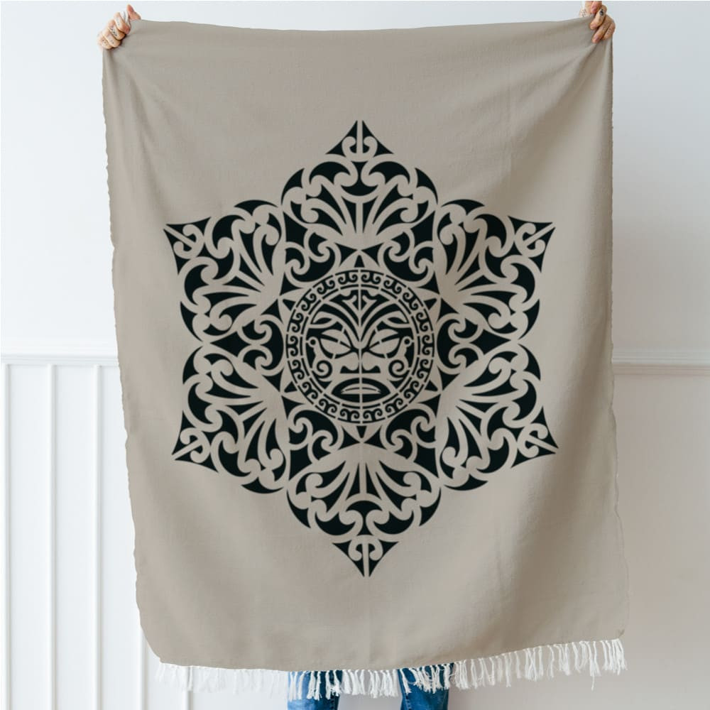 Ez a stencil minta Új-Zéland őslakosai, a maorik által faragott totemeket, a pouwhenua-kat idézi.