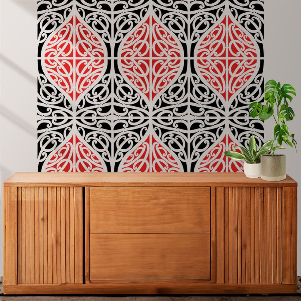 Ez a stencil minta Új-Zéland őslakosai, a maorik által faragott totemeket, a pouwhenua-kat idézi.