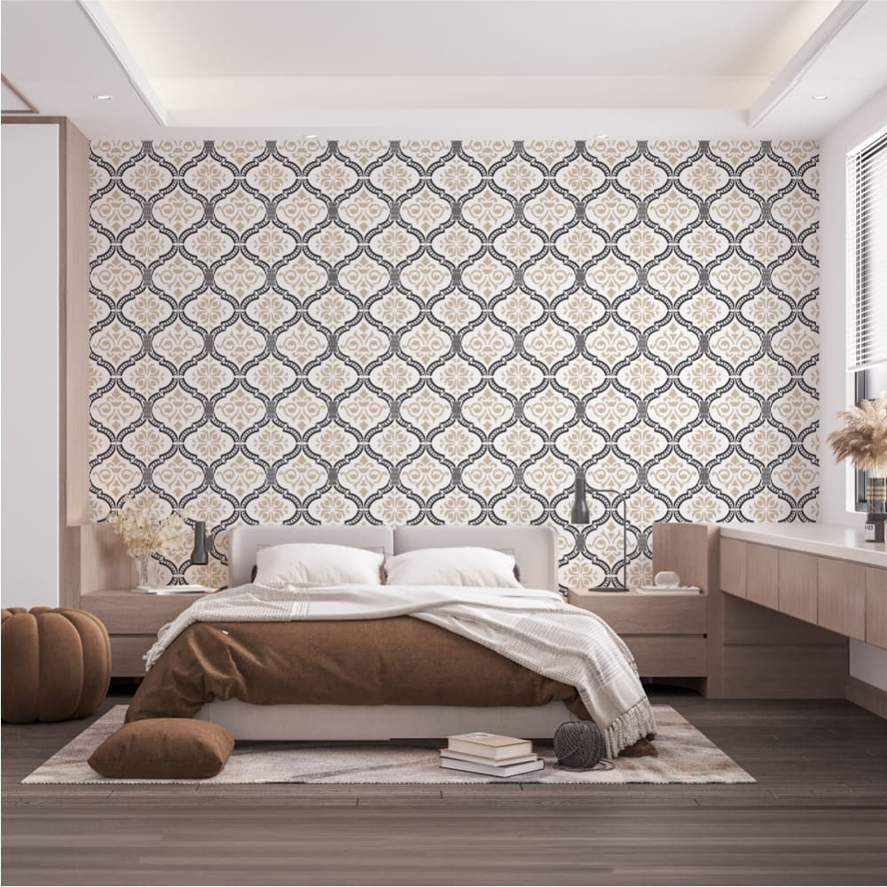 Minden irányban folytatható minta. A nagy léptékű falon, a kisebbek bútoron érvényesülnek.
