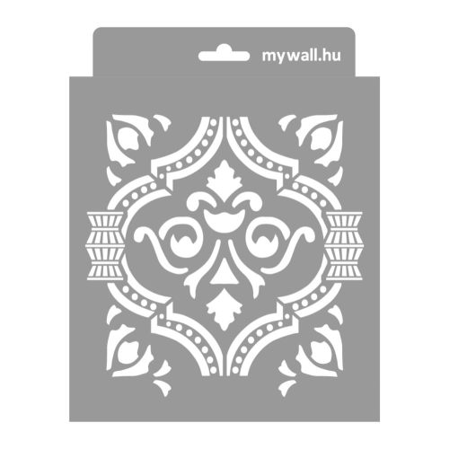 A képek között látható gyönyörű falat Farkas Hajnalka készítette, több más stencilt is felhasználva, mint pl. a Marokkó 08 és a Barokk 05.