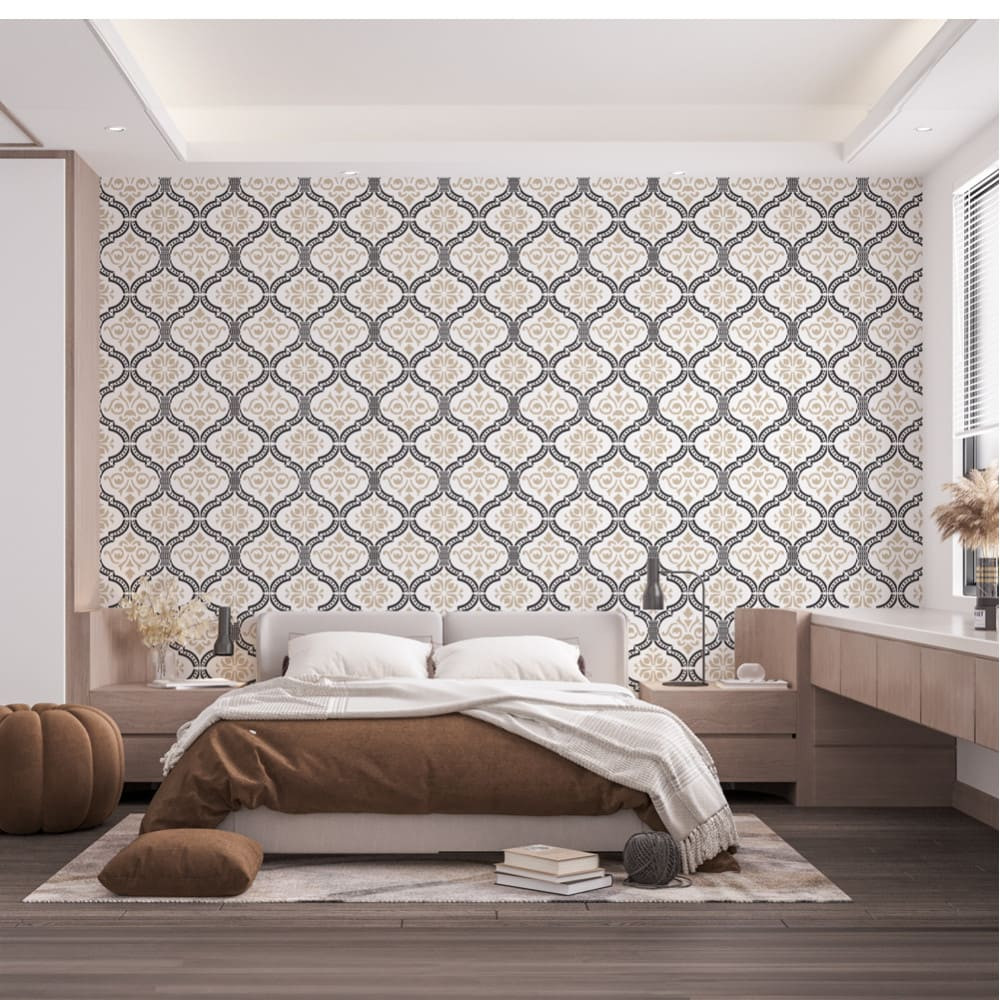Minden irányban folytatható minta. A nagy léptékű falon, a kisebbek bútoron érvényesülnek.