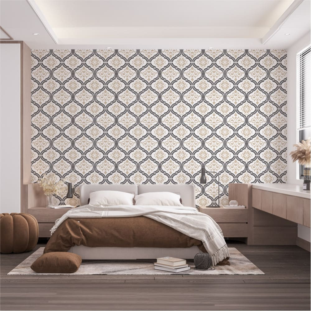 Minden irányban folytatható minta. A nagy léptékű falon, a kisebbek bútoron érvényesülnek.