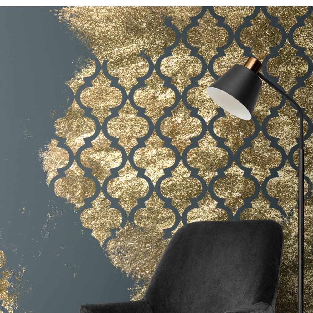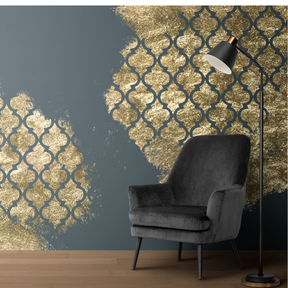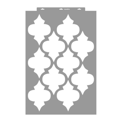 Ennél a marokkói mintánál a fal alapszíne adja a rácsvonalakat. A stencilminta minden irányban folytatható.