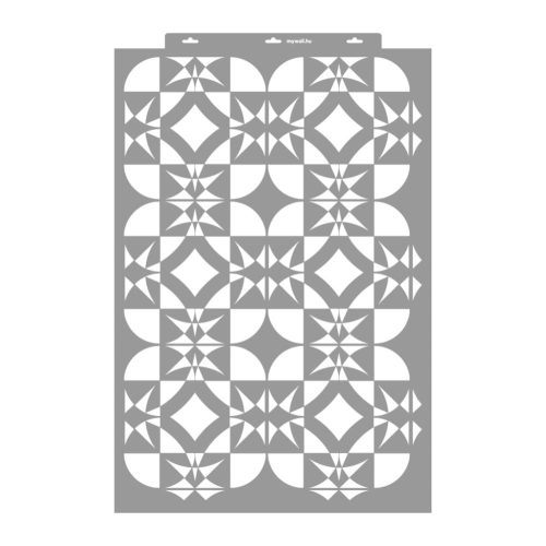 A különböző léptékű, minden irányban folytatható mozaik stencilminta lenyűgözően sokoldalú, és remekül alkalmazkodik a különböző kreatív projektekhez.