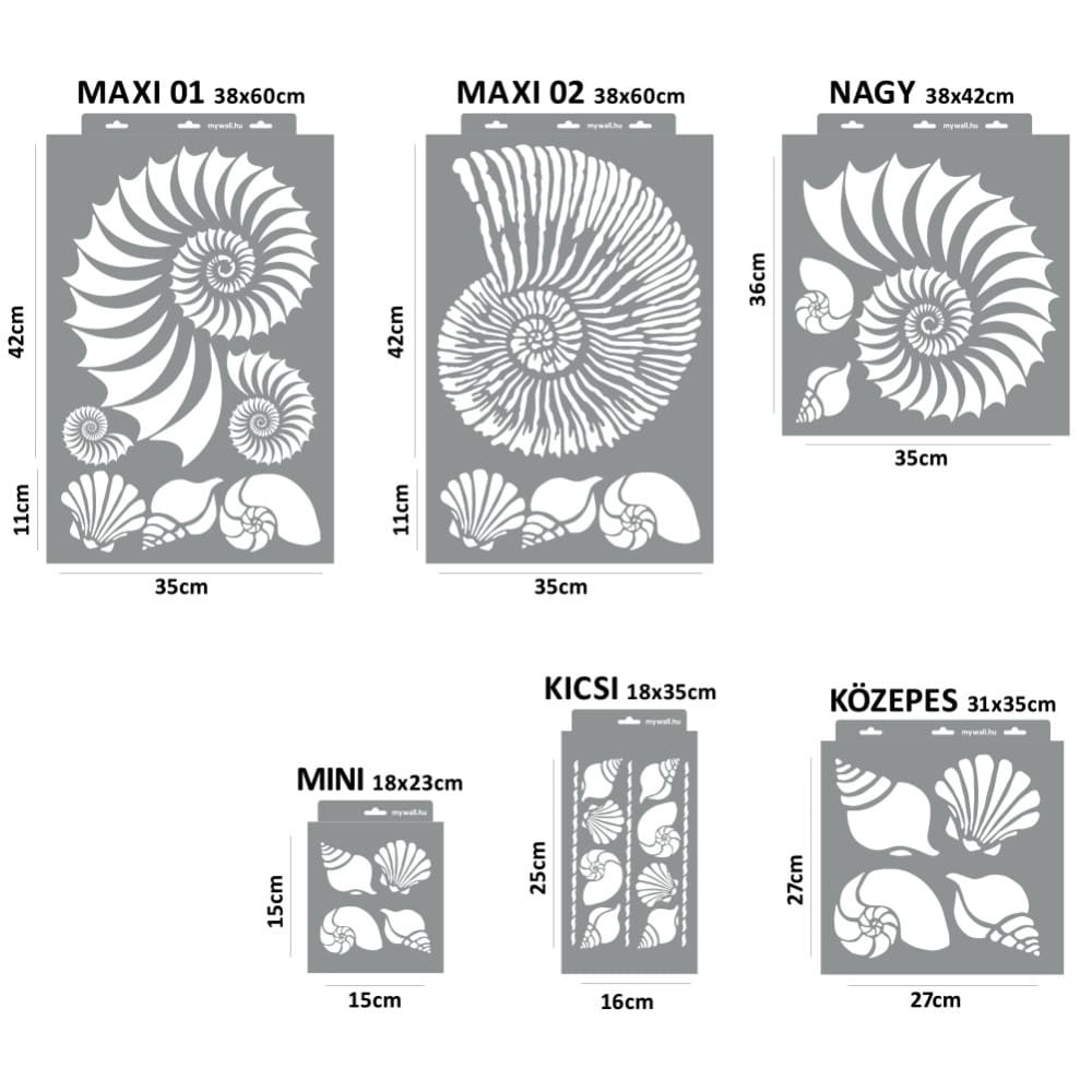 A tengerparti téma elengedhetetlen tartozékai a különféle formájú kagyló és csigaház stencilek.