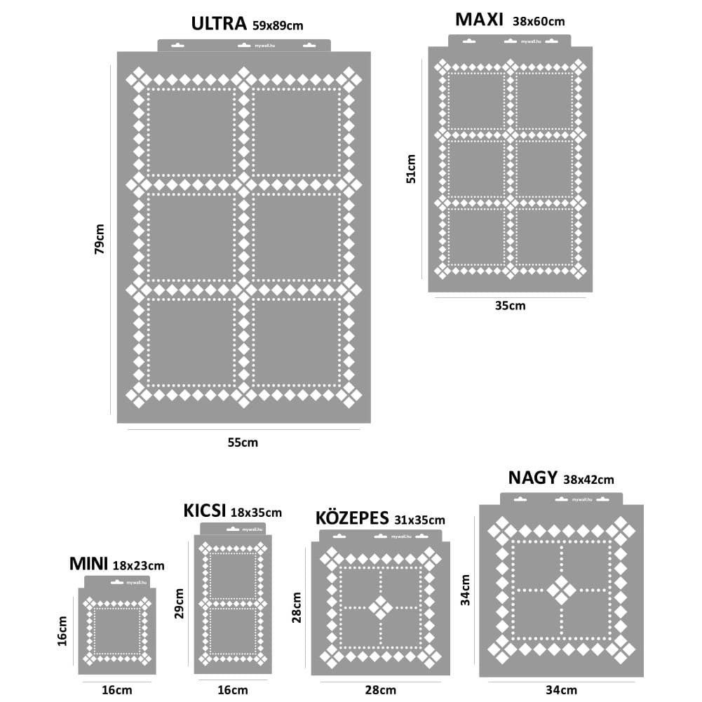 Faldekorációd kitöltő elemeként használhatod ezt a légies rácsos stencil motívumot, ami a régi, hagyományos csipketerítők mintázatát idézi, letisztult, modern köntösben.