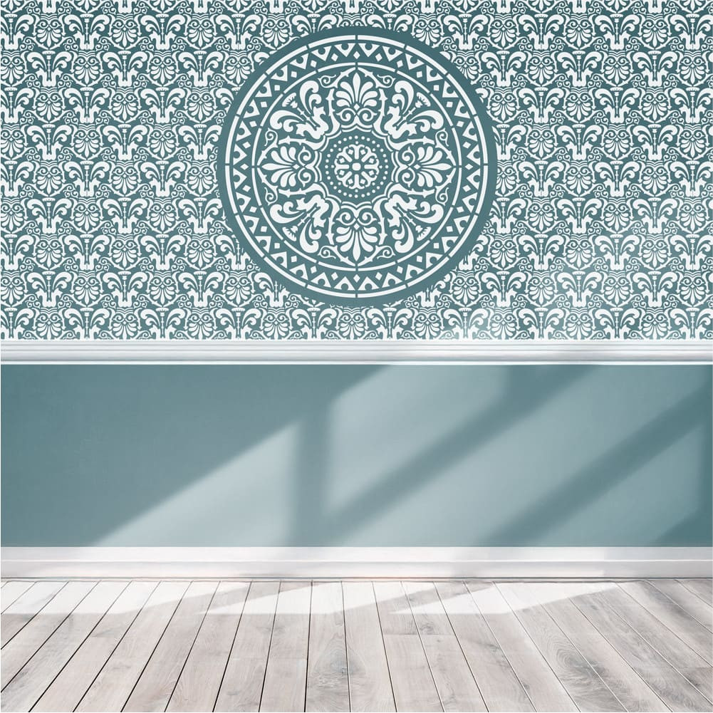 Klasszikus rozetta stukkókat idéző stencil minta.