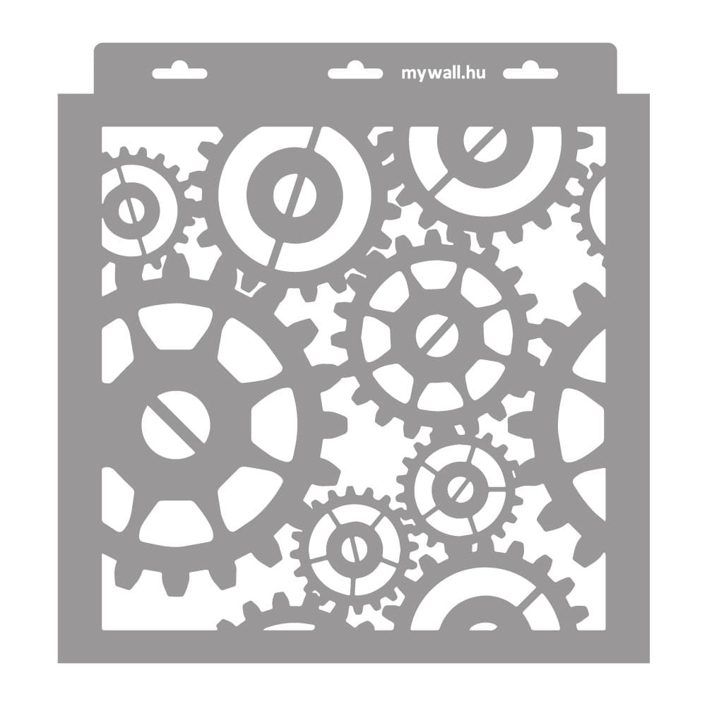 A steampunk stílusirányzat elengedhetetlen kellékei a fogaskerekek, óraszerkezetek alkotta kusza egyveleg. A mechanikus elemek részletgazdag mintázatát ábrázoló stencillel egyedi, viktoriánus-futurista hangulatot teremthetsz bármilyen felületen.